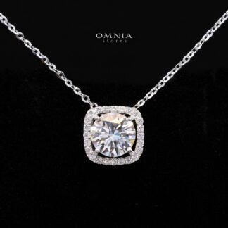 Meghan White Moissanite Double Cushion Halo Pendant Necklace and Drop Earrings Set in 925 Sterling Silver