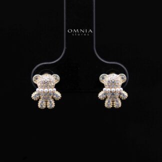 Nifla Gold Stacked Teddy Bear Design Silver Necklace and Earrings Set in 925 Silver with High-Quality Premium Zircon Stones
