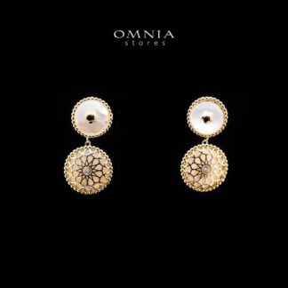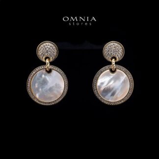 Omnia Zohair Dangle Earrings in Brass Gold Plated with Mother of Pearl