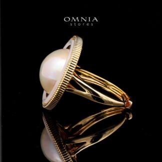 Omnia Leona White Mabel Pearl Classic Ring with Textured Beaded Frame in Brass with Gold Plated Finish