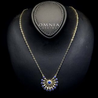 Omnia Layal Sunburst Lapis Pendant Necklace with Beaded Accents in Brass with Gold Plated Finish