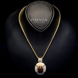 Omnia Ayesha Pendant Necklace in Brass Gold Plated with White Shell & Red Agate