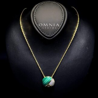 Omnia Celestia Malachite Round Pendant Necklace with Multi-Color Zircon Accents in Brass with Gold Plated Finish