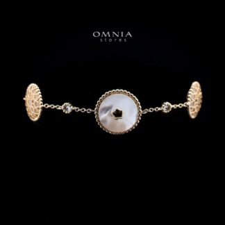 Omnia Elna Bracelet in Brass Gold Plated with White Shell & Delicate Chain Design