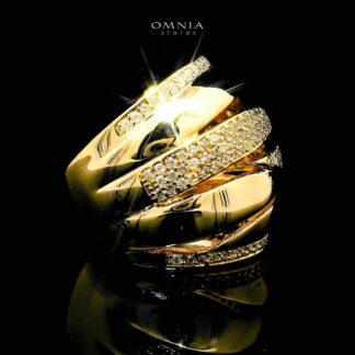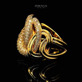 Omnia Amna Gold and White Ring in 92.5 Silver High Quality Simulated diamonds