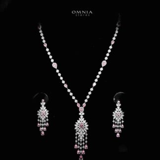 Omnia Ruweya White Bridal Long chain Set In Rhodium Plated with High Quality Zircon Stone