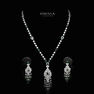 Omnia Donya Green Long Chain Full Set in High Quality Zircon Stone in Rhodium Plated
