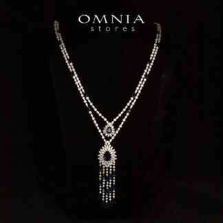 Omnia Lisa Blue Luxury Bridal Long Chain Full Set in High Quality Zircon Stone Rhodium Plated