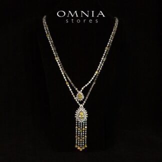 Omnia Alena Luxury Yellow Bridal Long Chain Full Set in High Quality Zircon Stone Rhodium Plated