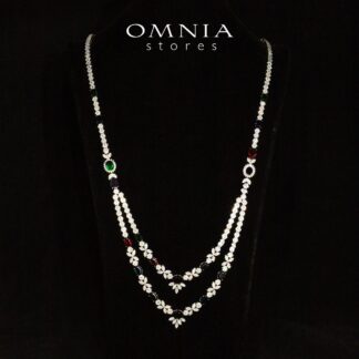Omnia Hasmaa White Bridal Long chain Set In Rhodium Plated with High Quality Zircon Stone
