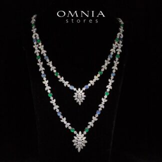 Omnia Keily Green and Blue Luxury Bridal Long Chain Full Set in High Quality Zircon Stone Rhodium Plated