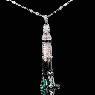 Omnia Vania Multi Color Horse Design Long Chain Necklace & Drop Earrings Set in 925 Silver With High Quality Simulated Diamonds