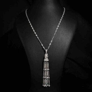 Omnia Faiha Bridal Long Chain Set in Rhodium Plated Finish with High-Quality White Zircon Stones