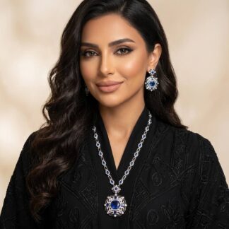 Omnia Donya Blue Long Chain Full Set in High Quality Zircon Stone in Rhodium Plated (17cm only available in KSA)