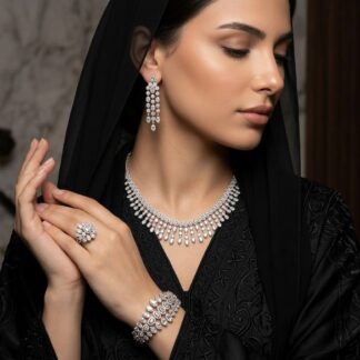 Omnia Aseel White Luxury Bridal Full Set in High Quality Zircon Stone Rhodium Plated