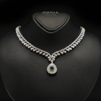 Omnia Duha Green Long chain Full Accessories in High Quality Zircon Stone Rhodium Plated