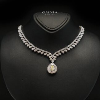 Omnia Duha Yellow Long chain Full Accessories in High Quality Zircon Stone Rhodium Plated