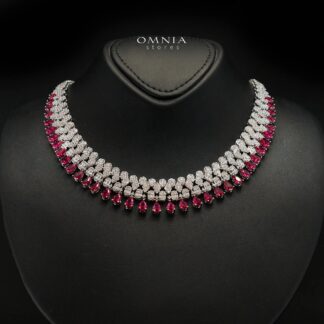 Omnia Avelia Red and White Luxury Bridal Choker Full Set in High Quality Rhodium Plated Zircon Stones