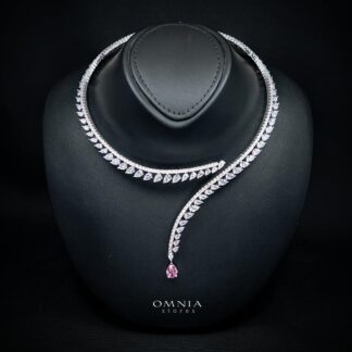 Omnia Anastasia Pink Luxury Bridal Full Set in High Quality Zircon Stone in Rhodium Plated