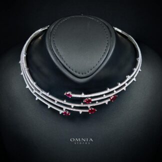 Omnia Nada Maroon Bridal Full Set in High Quality Zircon Stone Rhodium Plated