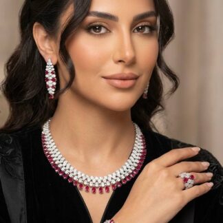 Omnia Nisrine Pink Bridal Full Set in High Quality Zircon Stone in Rhodium Plated
