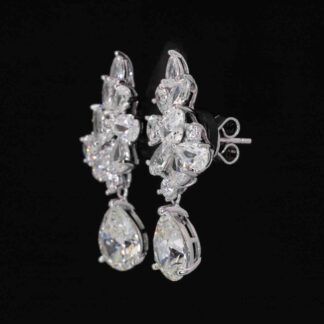 Omnia Ranim White and Yellow Floral Drop Earrings With High Quality Simulated Diamonds In 925 Silver