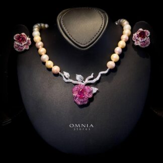 Omnia Masa Fresh Real Water Pearl Set in 92.5 Silver High Quality Simulated diamonds