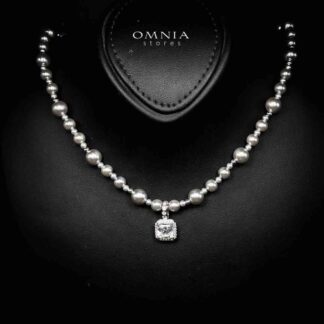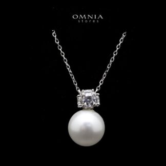 Omnia Anyah White Peal Pendant Necklace With High Quality Certified Lab Crafted Stones In 925 Silver 45cm