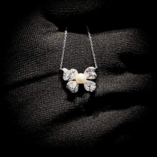 Omnia Pearl Butterfly Necklace in 92.5 Silver with High Quality Simulated Diamonds