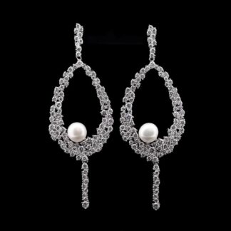 Omnia Nashita Fresh Water Pearl Drop Earrings in 925 Silver In High Quality Simulated Diamonds