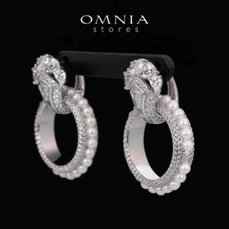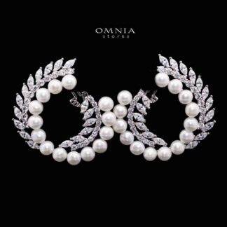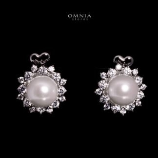 Omnia Alaya White Pearl Earrings With High Quality Lab Crafted Stones In 925 Silver