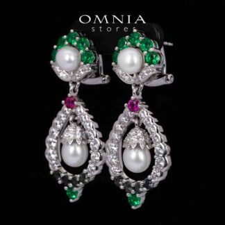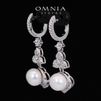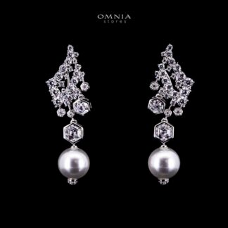 Omnia Naira Silver Pearl Drop Earrings In 925 Silver With High Quality Lab Crafted Stones