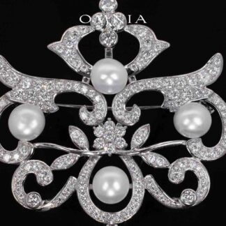 Omnia Sophia Pearl Flower Brooch in 92.5 Silver with High Quality Simulated Diamonds