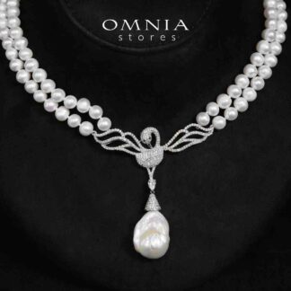 Omnia Afra Fresh Real Water Pearl Pendant Necklace 925 Silver High Quality Simulated diamonds