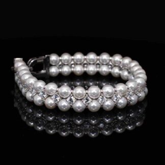 Omnia Blossom Pearl Bracelet in 925 Silver with High Quality Simulated Diamonds