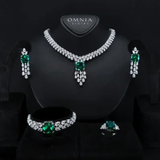 Omnia Reman Green Full Set in High Quality Zircon Stone Rhodium Plated
