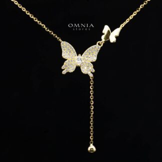 Kapri Gold Butterfly Motif Necklace and Earrings Set in 925 Sterling Silver with Premium Cubic Zirconia
