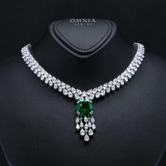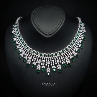 Omnia Anoud Green Luxury Bridal Choker Full Set in High Quality Rhodium Plated Zircon Stones (16 cm only available in KSA)