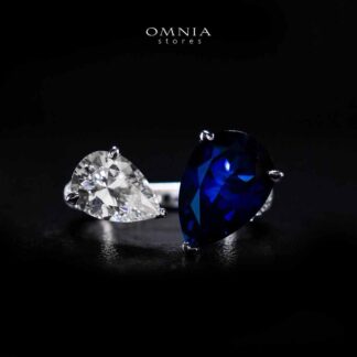 Omnia Ayda Dual Heart Blue and White Silver Ring In 925 Silver High Quality Certified Lab Crafted Stones