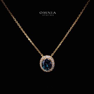 Omnia Fiza Gold Locket Peandant Necklace In 925 Silver High Quality Certified Lab Crafted Blue Stones