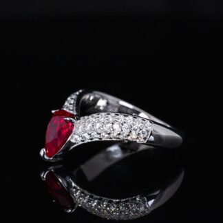 Omnia Aila Red Pear Cut Ring With High Quality Certified Lab Crafted Stones In 925 Silver