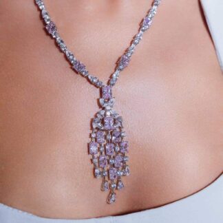 Omnia Israa Pink Necklace In 92.5 Silver High Quality Simulated diamonds