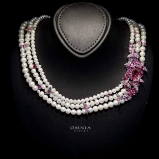 Omnia Blossom Pearl Necklace in 92.5 Silver with High Quality Simulated Diamonds
