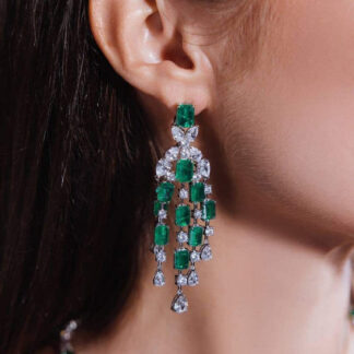 Omnia Israa Green Chandelier Earrings In 92.5 Silver High Quality Simulated diamonds