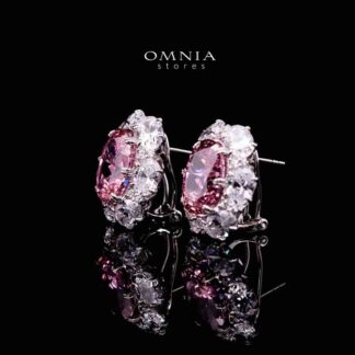 Omnia Beeta Pink and White Flower Silver Clip Earrings in 925 Silver High Quality Simulated Diamonds Stones