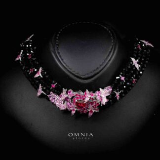 Omnia Blossom Black Beads Necklace in 925 Silver with High Quality Simulated Diamonds