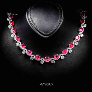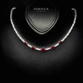 Omnia Heba White and Red Necklace With High Quality Certified Lab Crafted Stones In 925 Silver
