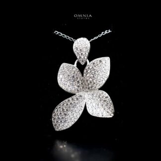 Omnia Dayana Floral Necklace in High Quality 92.5 Silver with Simulated Diamonds