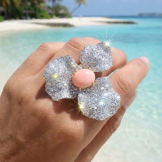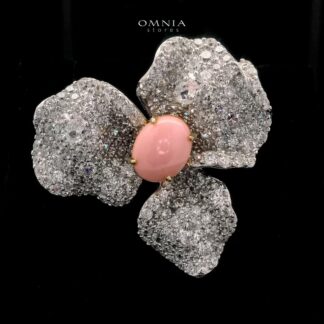Omnia Lubaina Pink Coral Flower Ring in 925 Silver Accessories High Quality Simulated Diamonds
