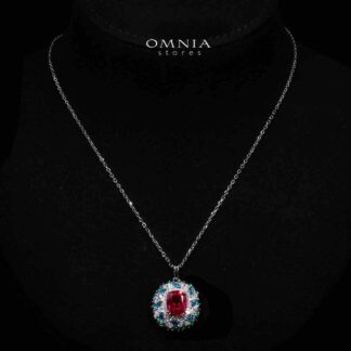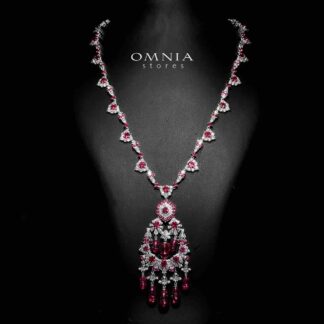 Omnia Nawwar Red and Pink Long Chain Necklace With High Quality Lab Crafted Diamonds In 925 Silver